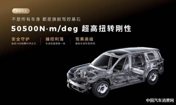 新车采用九横三纵四连环笼式车身,悬架为前双叉臂+后五连杆结构,除了带有双腔闭式空悬+CDC减振之外,还拥有MKC2线控制动、博世R-EPS转向以及LMC2.0底盘控制系统加持,支持底盘预瞄主动控制、双轮爆胎控制、3.6米级圆规掉头等功能。